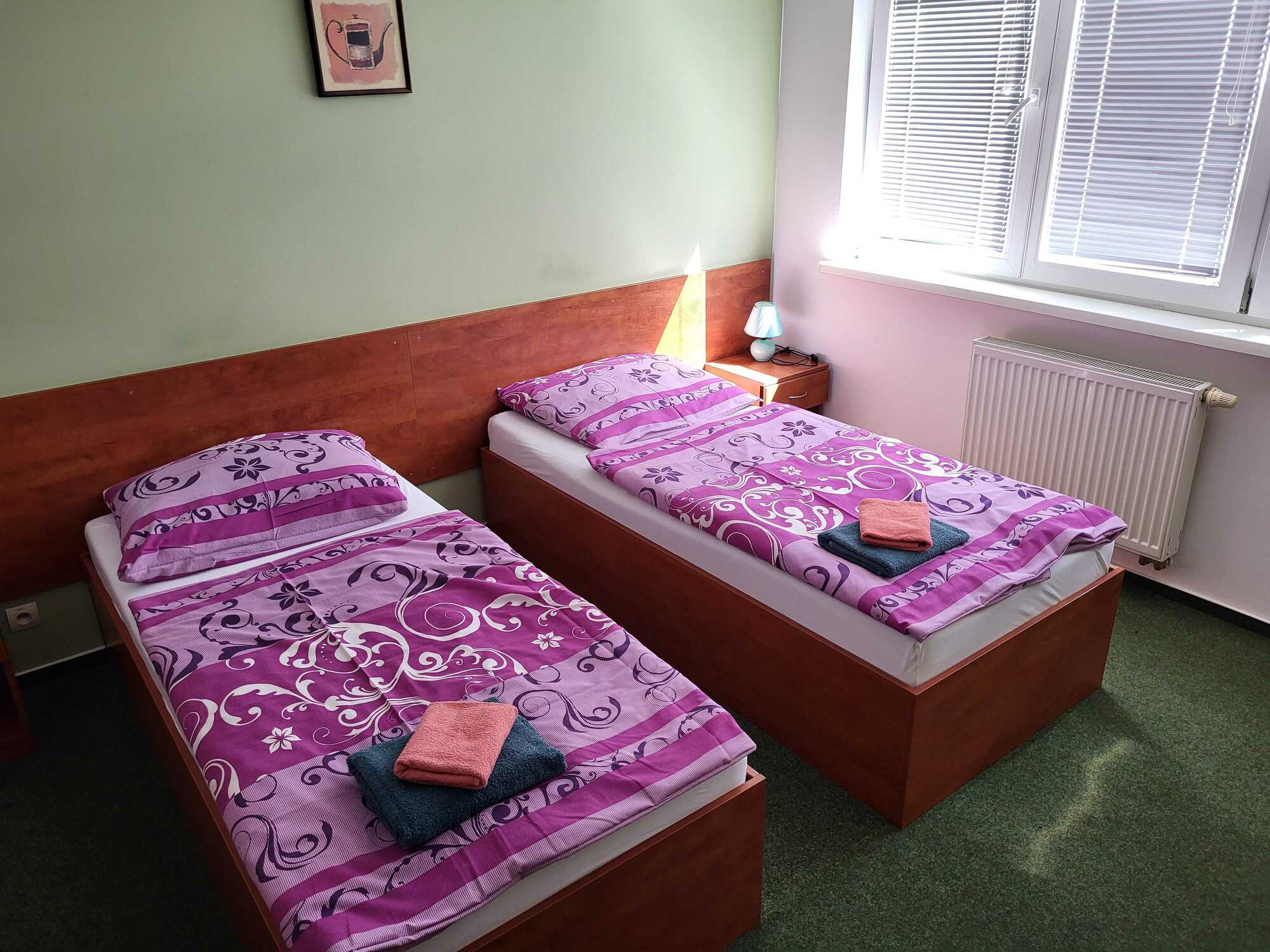 Po vstupe do izby sa nachádzate v predsieni so vstavanou skriňou a skrinkou na topánky. Z predsiene sa vchádza do spálne s dvomi oddelenými posteľami. Izba je vybavená TV, chladničkou, rýchlovarnou kanvicou. Samozrejmosťou je samostatné WC s k kúpeľňou. Väčšina našich izieb je vybavená klimatizáciou
